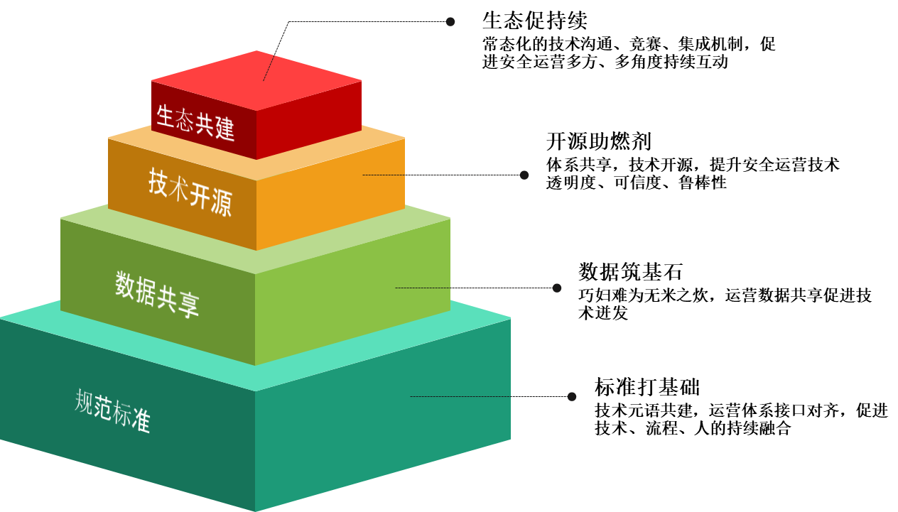 Èçͼ3Ëùʾ£¬±¾ÎĽ«AISecOpsÊÖÒÕÉú̬µÄ¹¹½¨£¬¹éÄÉ×ÛºÏΪ¹æ·¶±ê×¼¡¢Êý¾Ý¹²Ïí¡¢ÊÖÒÕ¿ªÔ´¡¢Éú̬¹²½¨ÕâËĸöÌõÀí¡£Í¨¹ýÐÐÒµ¼¶¡¢¹ú¼Ò¼¶±ê×¼µÄ½¨É裬¶ÔÆë¡¢Í³Ò»¡¢¹æ·¶Çå¾²ÔËÓªµÄÒªº¦Á÷³ÌÓëÊÖÒÕ½Ó¿Ú£¬ÒÔÓÐÓÃÔÚͳһϵͳÏÂÃ÷È··Ö¹¤£¬ÓÅÖÐÈ¡ÓÅ£»Í¨¹ýÊý¾Ý¹²Ïí£¬½¨ÉèÇå¾²ÔËÓªÊÖÒյıê×¼ÊÔÑ鳡£¬Ôö½øÊÖÒÕÄÜÁ¦µÄ½»·æÓ뾺ÕùÉú³¤£»Í¨¹ýÊÖÒÕ¿ªÔ´£¬·¢¶¯¹ØÁªÊÖÒÕÉçÇøµÄ²ýÊ¢£¬ÎüÒýºÍ×÷Óý¸ü¶àÇå¾²ÔËÓªÊÖÒÕÈ˲ţ»×îºó£¬Í¨¹ý½»Á÷ƽ̨Óë»úÖÆ¹²½¨£¬ÂòͨÏàͬ±ÚÀÝ¡¢½µµÍÏàÖúÃż÷£¬ÕæÕýʵÏÖ³£Ì¬»¯¡¢³¤ÆÚ»¯¡¢È«·½Î»µÄÊÖÒÕ½»Á÷¡£