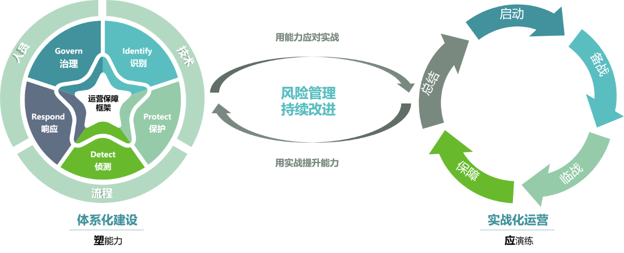 ÈçͼËùʾ£¬ÍøÂçÇå¾²ÄÜÁ¦ËÜÔìÊÇÔÚÖ°Ô±¡¢ÊÖÒÕºÍÁ÷³ÌµÄÖ§³ÖÏ£¬´ÓÖÎÀí¡¢Ê¶±ð¡¢±£»¤¡¢Õì²âºÍÏìÓ¦µÈ5¸ö·½Ã濪չϵͳ»¯½¨ÉèµÄÀú³Ì¡£ÄÜÁ¦ËÜÔ쵽ʲôˮƽ£¬ÐèҪͨ¹ý¹¥·ÀÑÝÁ·¾ÙÐÐÄ¥Á·¡£ÊµÕ½»¯¹¥·ÀÑÝÁ·¿ÉÒÔ·¢Ã÷ÍøÂçϵͳÖб£´æµÄÇå¾²ÎÊÌ⣬ʶ±ðÇ徲Σº¦£¬²¢Í¨¹ýÒ»Á¬Ë¢Ð½øÒ»²½Ôöǿϵͳ»¯½¨ÉèЧ¹û¡£